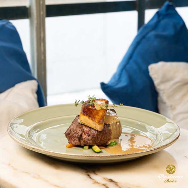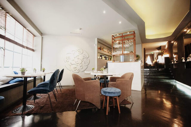 Acolhedor e intimista, com paredes de granito, apresenta uma cozinha de autor que dá um toque internacional aos pratos nacionais. Trata-se de um espaço em que a criação de um ambiente entre o intimista e o sofisticado foi planeada com rigor e bom gosto.