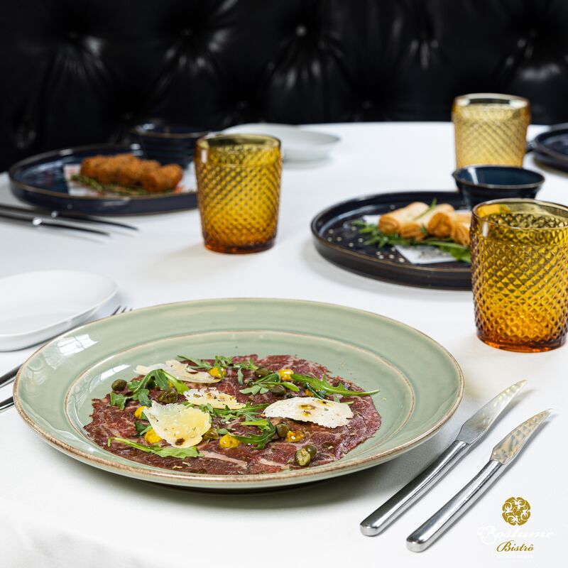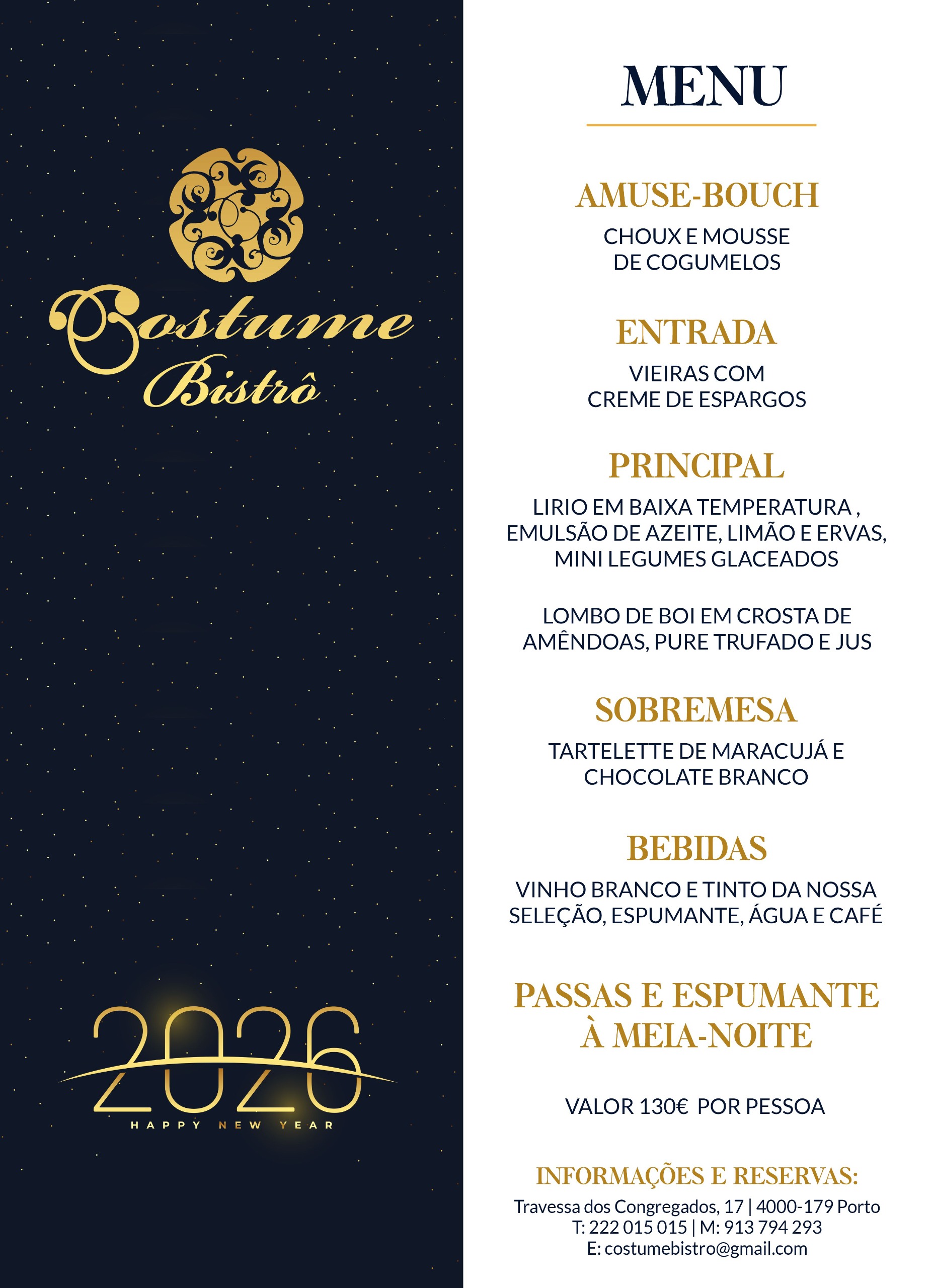 “O restaurante Costume Bistrô, situa-se pleno centro histórico do Porto, numa zona conhecida pelas inúmeras tascas. Em contraste, este é espaço sóbrio e requintado. A cozinha de autor, a preços acessíveis, conjuga sabores de caráter nacional e internacional, por vezes servidos com música ao vivo ou jantares temáticos. Da antiga tasca apenas sobrou o granito, que agora ajuda na elegância e serve de testemunha das boas conversas e eventos vários que por aqui se desenvolvem. Pratos com diversas inspirações, modernos, como o espaço, e um menu executivo de combate para os almoços citadinos.”